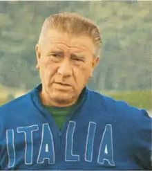 Valcareggi is widely remembered for his success as a coach, in particular with Italy national football team. He began his coaching career as a player–manager with Piombino in 1952; after managing several Italian club sides (including Prato, helping the club to the 1956–57 Serie C title and Serie B promotion, as well as Atalanta and Fiorentina), he was named the Italian team's coach, replacing manager Edmondo Fabbri – under whom he served as an assistant – initially alongside Helenio Herrera, and later independently. He was in charge of the Italian national side between 1966 and 1974, guiding them to victory in the 1968 European Championship on home soil, and to the final in the 1970 FIFA World Cup in Mexico. Under Valcareggi, Italy lost only six games in eight years.[1][2][3][4]