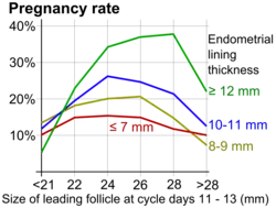- Palatnik A, Strawn E, Szabo A, Robb P (May 2012). "What is the optimal follicular size before triggering ovulation in intrauterine insemination cycles with clomiphene citrate or letrozole? An analysis of 988 cycles". Fertility and Sterility. 97 (5): 1089–94.e1–3. doi:10.1016/j.fertnstert.2012.02.018. PMID 22459633.