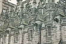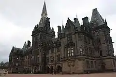 The college's main building, by David Bryce (built 1863-69), blends the design of a Loire château with elements of the 19th-century Scottish Baronial. According to the school's website, the combination of styles and the site of the building led a modern architectural expert to praise it as "undeniably one of Scotland's greatest buildings".[39]