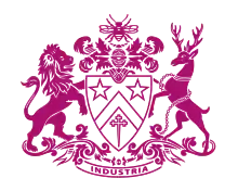 The school crest is a bee because it appears at the top of Sir William's Coat of Arms and his Seal (for letters etc.) was also a Bee. When the College Arms were granted, they were Sir William's with the colours reversed. Nowadays a more modern image is used but it is still the same Coat of Arms. The bee is the origin of the school's motto 'Industria'. Its motif features prominently around the school. Beehives appear over the now-unused East and West doors of the College. A bee in stone watches over the front of Malcolm House (1880) and the Prep School. A large bee fronts Kimmerghame (1928) and there is an original lead bee in the porch of the Headmaster's Lodge.[41]