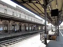 In 2017, after the installation of three lifts serving the three platforms used for passenger services,[5] the last phase of the redevelopment work began, which was completed at the beginning of 2018. This resulted in the raising of all platforms to 55 cm above the rail and the installation of a shelter serving platforms 4 and 5, while the entire passenger building was painted in Parma yellow.[6]