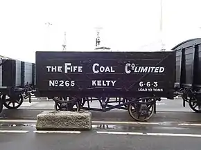 The Fife Coal Company was formed in 1872 to acquire the small Beath and Blairadam Colliery with its pits in Kelty. Its head office was in Leven.[5][6] In addition to coal, the company worked some ironstone.[7] For the whole of its operating life, the company was run by Charles Carlow and then his son C. Augustus Carlow. Output was expanded from an initial 70,000 tons a year to 4.3m. in 1911. Although it became the largest coal company in Scotland, Fife Coal never regained that level of output in the inter-war period. On the last day of 1946 its coal assets were nationalised.