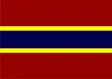 The cap badge of the FFY is a mounted knight (The Thane of Fife). It was also worn on the collars of the officers and men of the Squadron and on the arms above the chevrons of all Senior Non-Commissioned Officers.[28] The black beret of the Royal Tank Regiment was worn as regimental headdress.[29] The regiment wore a stable belt in the regimental colours of crimson and yellow with a dark blue stripe.[30]
