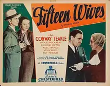 Fifteen Wives is a 1934 American mystery film directed by Frank R. Strayer and starring Conway Tearle, Natalie Moorhead and Raymond Hatton.[1] After arriving from South America, a man is murdered at a New York hotel. When the police investigate, they discover he has fifteen wives.