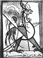 The Fighting Cock Society (Persian: انجمن هنری خروس جنگی) was an Iranian progressive body devoted to the promotion of modern arts, including painting, drama, music, poetry and literature, established in 1949 by Jalil Ziapour alongside other avant-garde poets and artists. Other founding members of the Association were Gholamhossein Gharib Gorgani (literature), Hassan Shirvani (theater) and Morteza Hannaneh (music).[1] The society published a magazine with the same title. The headquarters of the society was Ziapour's studio on Takht-e-Jamshid Street. He declared the society's purpose to be "a fight against the unrealistic traditionalism of the time" and chose a verse by Farrukhi Sistani as the motto of the society:[2] "The story of Alexander is old and turned into a myth/ Bring a new word, for there is another sweetness to the new".