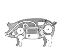 The characters compete to possess a remarkable 18th-century automaton, Rosellini's 1737 Mechanical Pig, and a forgery of the automaton.[2] They travel from Findhorn, Scotland to a South Florida trailer park, with side-trips to the virtual Holodeck, in their pursuit. Individually and together, they discover, hide, steal, and disassemble the mechanical pig. In the end, they meet up at the turn of the 21st century.[5]