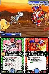 Throughout the course of the story, the player will participate in combat that is referred to as "pop-up duels". Battles utilize a deck constructed from cards they have collected from story events, minigames, microgames, or other characters. These decks are used to battle game's bosses in card battle games. Chocobo Tales features online multiplayer capabilities as well. Players can compete against each other in either pop-up duels[5] or minigames. Both modes can connect either through local wireless or Nintendo Wi-Fi. Multiplayer includes playing the card battles in multi-card and online play by using Nintendo Wi-Fi, and the mini-games are multi-card and single-card download multiplayer as well. 2-4 players may team up for battles, or to participate in mini-games.