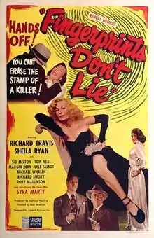 Fingerprints Don't Lie is a 1951 American crime film directed by Sam Newfield and starring Richard Travis, Sheila Ryan and Margia Dean.[1] It was released by the independent distributor Lippert Pictures. The film's sets were designed by the art director Harry Reif.