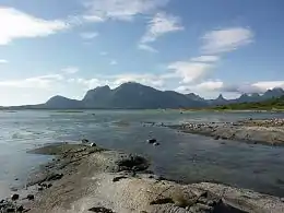 ![]() Northwestern coast of Finnøya, with the Hamarøy coastal mountains behind | |