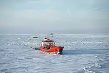 During the winter months, Finnish and Swedish authorities may declare traffic restrictions in the Northern Baltic Sea in order to ensure that ships operating in the region are capable of navigating in ice-covered waters safely and efficiently.[1] These restrictions, for example "ice class 1A, 2000 DWT", declare the minimum ice class and other requirements for ships that may be provided with icebreaker assistance. The Finnish fairway dues, a system of fees charged for the use of sea lanes to cover the costs of management and icebreaker assistance, also depend on the vessels' ice class. Since ships of lower ice classes generally require more assistance during the winter months, their fairway dues are considerably higher than those of ships of the highest ice classes.[2] For this reason the majority of ships regularly calling Finnish ports are built to the highest ice classes. In the beginning of 2008, 47% of the Finnish tonnage were of ice class 1A Super.[3]