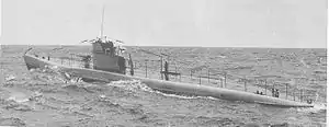 On 5 August 1941 Vesihiisi attacked a convoy transporting supplies to besieged Soviet garrison at Hanko. According to Finnish sources, the convoy consisted of a transport vessel of Molotov class ( Iosif Stalin-class passenger ship) escorted by pair of large minesweepers and group of patrol boats.[4] According to Soviet sources, there were only four minor ships: the 489-ton freighter Hilde, built in 1894,[5] one T58-class minesweeper, and two MO-class patrol boats.[6] The submarine penetrated the escort screen and launched two torpedoes at a range of 700 metres (770 yd) while being between the target and the escorts. Neither of the torpedoes exploded and the escorts forced Vesihiisi to dive to the depth of 75 metres (246 ft).[4][6] Though the submarine did not suffer severe damage from the depth charges the repairs on the dock lasted for a week.[4]