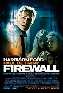 Firewall is a 2006 action thriller film[4] directed by Richard Loncraine and written by Joe Forte.[5] The film stars Harrison Ford as a banker who is forced by criminals, led by Paul Bettany, to help them steal $100 million. It was initially titled The Wrong Element and was going to be directed by Mark Pellington, but he left production in August 2004 after the death of his wife. Loncraine replaced him two months later.[6][7]