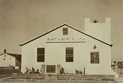 A. Byron Chase was the first pastor of the church, and served until 1942 when he left to become a chaplain in the U.S. Army. Both the Parsonage and the Sanctuary were built by the men of the church. The men made the cement blocks which formed the church by pouring cement into hand-made forms. A basement provided space for classes as well as social activities at the time.