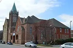 The First Baptist Church is a historic church building, now housing the non-denominational Calvary Revival Church Peninsula, at 119 29th Street in Newport News, Virginia. Built in 1902, the church is a prominent local example of Romanesque Revival architecture executed in stone. It was designed by R.H. Hunt of Chattanooga. It is fronted by a three-arch recessed porch, flanked by a tower on the left whose upper stages have rounded corners, and is capped by a pyramidal roof with conical turrets at the corners. The congregation was organized in the 1880s, and occupied this site until the 1980s.[2] The congregation opened a suburban chapel in 1979. It operated on both sites for many years before closing the 29th Street church.[3]