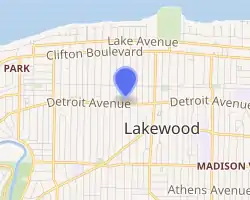 The former First Church of Christ, Scientist, built in 1922, is an historic Classical Revival style Christian Science church located at 15422 Detroit Avenue, on the northeast corner of Detroit and Arthur avenues, across from the Public Library in Lakewood, Ohio. Its massive entrance portico is supported by six Doric columns. It was designed by noted Chicago-based architect Charles Draper Faulkner, who was renowned for the churches and other buildings that he designed in the United States and Japan. He designed over 33 Christian Science church buildings and wrote a book called Christian Science Church Edifices which features this church as well as many others.[1][2][3][4]