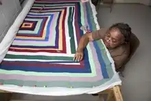By contrast Sherald said the dress reminded her of the works of 20th century Dutch painter Piet Mondrian and the African-American quilting tradition of Gee's Bend, Alabama, a community descended from formerly enslaved African Americans.[19][16] Sherald felt it echoed the Gee's Bend tradition of "composing quilts in geometries that transform clothes and fabric remnants into masterpieces."[20]