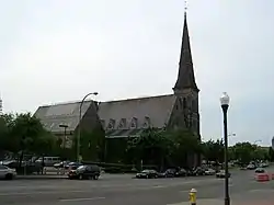 First Presbyterian Church is a historic Presbyterian church located at Rochester in Monroe County, New York. It is a Gothic Revival–style edifice designed in 1871 by Rochester architect Andrew Jackson Warner. It is built of Albion sandstone and trimmed with white Medina sandstone. It features a single stone bell tower and spire at the northeast corner beside the main entrance. It was the third home for Rochester's oldest congregation.[2] It is now home to the Central Church of Christ.