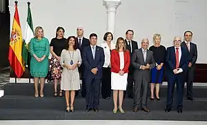 Until January 2015, the cabinet comprised members of the PSOE–A (including one independent) and IULV–CA, to become the second coalition government between the two parties in the region and the fourth coalition government in the region overall.[3][4] On 27 January 2015, president Díaz expelled all IU members from the cabinet under a pretext to call for a snap election amid increasing instability within the governing coalition.[5] It was automatically dismissed on 23 March 2015 as a consequence of the 2015 regional election, but remained in acting capacity until the next government was sworn in.