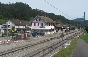 Fischenthal railway station is a railway station in the Swiss canton of Zurich, and the municipality of Fischenthal. It is located on the Tösstalbahn between Winterthur and Rapperswil, and is served by Zurich S-Bahn line S26.[1][2][3]
