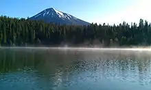 Fish Lake is located between two volcanoes: Mount McLoughlin to the north and Brown Mountain to the south. Two-thousand-year-old andesite lava flows erupted from Brown Mountain surround Fish Lake's southern shore.[3][4]