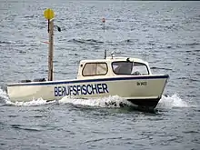 Swiss fishermen ply the lakes in small, open boats with outboard motors and space for nets, traps and coolers in the back.[14] They rarely have more than one other person working in the boat.[26] No purpose-built fishing vessels such as trawlers like those used by marine fishermen in other countries are in use.[30]