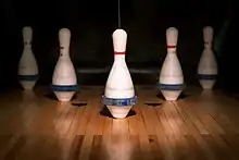 Five-pin bowling is a bowling variant which is played in Canada, where many bowling alleys offer it, either alone or in combination with ten-pin bowling. It was devised around 1909 by Thomas F. Ryan in Toronto, Ontario, at his Toronto Bowling Club, in response to customers who complained that the ten-pin game was too strenuous. He cut five tenpins down to about 75% of their size, and used hand-sized hard rubber balls, thus inventing the original version of five-pin bowling.[1]