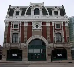 The current Great Five Flags Theater was constructed as the Majestic Theater in 1910. The rebuilt theater was designed by George L. Rapp, who eventually became one of the nation's premier theater architects. It was converted to a movie house in 1920 and renamed 'Spensley Theater' in 1929. Constructed in a Renaissance Revival style with French influences, it was later renamed the RKO Orpheum and used to show movies. Eventually, it fell into disrepair and was slated for demolition during urban renewal in 1969.