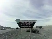 Five Mile Pass is a high arid region ~14 miles (23 km) west of Eagle Mountain, Utah, that is managed by the Bureau of Land Management and is popular for motocross, off highway vehicle recreation, mountain biking, hiking, and camping.[1]