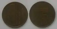 | Wilhelmina | Utrecht | Copper/Nickel | A crown between two oak branches | Value in a wreath of two bonded orange branches | Smooth with no edge lettering | 1907-1909 |