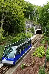 In 1974, the cars on the line were again replaced, with the new cars supplied by Von Roll and also able to carry 80 passengers. In 1987, the electric motor was replaced with a new 190 horsepower (140 kW) one, whilst at the same time the brakes and electrical systems were replaced. In 1997, the lower terminus was refurbished and extended. Between September and November 2002, a fourth generation of car was introduced to the line, built by Doppelmayr (underframes) and Gangloff (bodies). These cars are capable of carrying 100 passengers and equipped with bigger windows and glass roofs.[4][5]