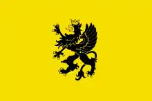 The flag of Kashubia (Kashubian: fana Kaszëb) is the flag used to represent Kashubians. It usually cotains either two black and yellow stripes or a black griffin with a crown on a yellow background.