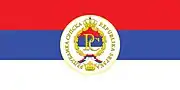 The flag of Republika Srpska within Bosnia and Herzegovina was adopted on 24 November 1992.[1] The flag is a rectangular tricolour with three equal horizontal bands of red, blue and white.[2] It is almost identical to the civil flag of Serbia, but with different aspect ratio of 1:2 instead of 2:3 and slightly different color shades.