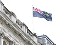 Flag of St Helena atop the Foreign, Commonwealth and Development Office, London