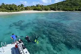 Flamenco is located on the northern shore of Culebra. Its name in Spanish (flamingo beach) comes from the numerous Caribbean flamingos (Phoenicopterus ruber) that were once common in Flamenco Lagoon.[4] The beach lies on a half-mile-wide, horseshoe strip of coast. The beach is bordered by the Culebra National Wildlife Refuge, which is of itself one of the oldest wildlife preserves in the United States. Off the coast of Flamenco, approximately a quarter mile, is a reef where the surf breaks. Characteristic of Flamenco is the beach's white sand and shallow clear waters.[5][6]