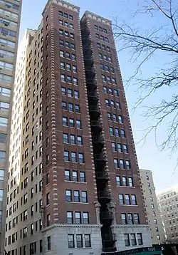 The Flamingo-on-the-Lake Apartments, also known as the Flamingo Apartment Hotel, is a building designed by architect William C. Reichert and located at 5500-5520 S. Shore Drive along Lake Michigan in the Hyde Park neighborhood of Chicago, Illinois. The 16-story apartment building was built with 144 apartments and 16 hotel rooms in 1927; it also featured an outdoor pool and bathhouse. It was designed in the Classical Revival style; its exterior is red brick with terra cotta ornamentation and a dentillated cornice.[2] It and the adjacent building, The Promontory Apartments, a co-op building designed by Mies van der Rohe, are the furthest east buildings in Hyde Park.