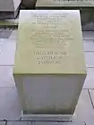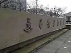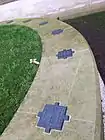 The soil held in the grass bed was collected by children from 70 war cemeteries and battlefields in Flanders in 'ceremonies of remembrance'.[1][2] Prince Philip, Duke of Edinburgh and Prince Laurent of Belgium were present for the ceremony in Ypres to hand over the sandbags of soil for the memorial on Armistice Day in 2013.[1] The soil was carried by Belgian and British schoolchildren and soldiers from the British Household Division, who loaded the soil onto a gun carriage of the King’s Troop.[2] From Belgium the soil was transported by sea by the Belgian Navy's frigate Louisa Marie (F931) and was given to the British Army on 29 November 2013 while alongside HMS Belfast. The sandbags were then transported through London on the original gun carriage to the memorial garden.[2]