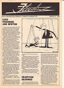 It ran for 31 issues from November 1977 to February 1982. Its circulation areas were essentially run-down working class suburbs, with some middle class housing in western Westmere. Flash's main preoccupation was addressing the unbalanced representation on the Auckland City Council, which was perceived by Westmere and Grey Lynn residents to be dominated by wealthy Remuera-based councillors. Local people felt that they had no say on the creation of the North Western Motorway, town planning, the extension of Queen Street to Dominion Road and New North Road through Basque Park Reserve[4] and the lead pollution from petrol that had been inflicted on the area and was to be perpetuated with the new motorway.