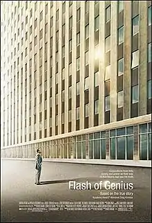Flash of Genius is a 2008 American biographical drama film directed by Marc Abraham. Philip Railsback wrote the screenplay based on a 1993 New Yorker article by John Seabrook.[2] The story focuses on Robert Kearns (played by Greg Kinnear) and his legal battle against the Ford Motor Company after they developed an intermittent windshield wiper based on ideas the inventor had patented. The film's title comes from the phrase "flash of genius" (like "stroke of genius"), which is patent law terminology that was in effect from 1941 to 1952, although Kearns's patent was filed in 1964; it held that the inventive act must come into the mind of an inventor as a kind of epiphany, and not as the result of tinkering.