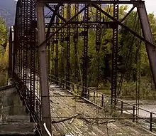 The Flathead River Bridge otherwise known as the Red Bridge is an abandoned steel truss bridge located at the south end of 4th Ave in Columbia Falls, Montana.[1] The bridge was added to the National Register of Historic Places in 2010.[2]