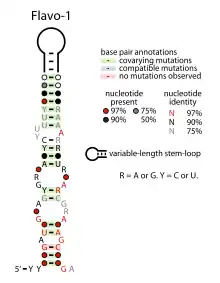 ![]() Consensus secondary structure of Flavo-1 RNAs | |