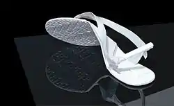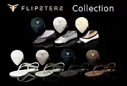 Flipsters (flɪp-stərs) are folding shoes, designed in Australia by L&M Designs. The footwear is produced in two styles: flip-flops and ballet flats. Flipsters footwear fold into a pouch which can be fit into a handbag and act as an alternative to standard shoes.[1] The product is designed to "fit into a small handbag to give stiletto-shoed feet a break"[2] The flip-flops are made with a 3-part rubber sole and fabric heel guard that allows the shoe to collapse flat, and while expanded provides support and structure similar to a standard flip flop. Flipsters come in a pouch designed to keep the product protected and clean. The product was designed with a triangle fold designed to mimic the motion of natural walking.[3] Matt Schmidt, Editor at "My Life News", described the innovative flipflop as "stylish and comfy".[4]