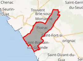 Floirac (French pronunciation: [flwaʁak]) is a commune in the Charente-Maritime department in southwestern France. On 1 January 2018, the former commune of Saint-Romain-sur-Gironde was merged into Floirac.[2] Floirac is situated in the Charente-Maritime department and Poitou-Charentes region (now part of the Nouvelle-Aquitaine region), in the west of France at 82 kilometers from La Rochelle, the department capital. Floirac is 443 kilometers from Paris.[3]