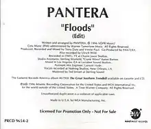 "Floods" is a song by American heavy metal band Pantera from their 1996 album The Great Southern Trendkill. A ballad, it is the longest song on the album and the third longest song the band has ever recorded, after "Cemetery Gates" (7:03) and "Hard Lines, Sunken Cheeks" (7:01). An early mix of the song was released on the 20th anniversary edition of The Great Southern Trendkill.[1]