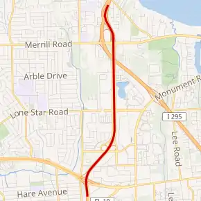 The entire route is in Jacksonville, Duval County. All exits are unnumbered.