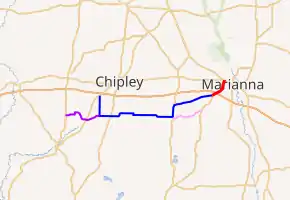 | Marianna | 24.433 | 39.321 | West end of state maintenance, and CR 176 overlap | ||
