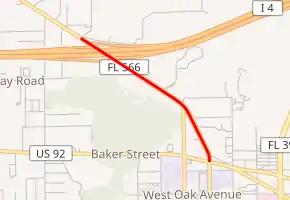 State Road 566 (SR 566) is an approximate one-mile-long (1.6 km), northwest-southeast highway near Plant City, Florida that connects Interstate 4 (I-4) to U.S. Route 92 (US 92).