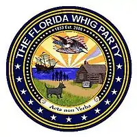 The Florida Whig Party is a now-defunct political party in the state of Florida.[1][2][3][4] The party chose to revive the 19th century Whig Party name. In 2008, the party aligned itself with the Modern Whig Party, a national organization of about 30,000 members initially founded by Iraq and Afghanistan veterans as a "comeback" of the historic Whig Party.[5] However, the Florida Whig Party discontinued this association in late 2009, largely due to its increasingly conservative platform.[6] The Florida Whig Party was the first "Whig" state political party to officially run candidates for federal office in over a century.[7]