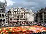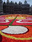 The Flower Carpet is a biennial event in Brussels in which volunteers from around Belgium convene at the Grand Place, the historic centre of the city, to weave a carpet-like tapestry out of colorful begonias.[1] The event takes place every other August, coordinating with Assumption Day.[2] Nearly a million flowers are required to create the ephemeral 1,800 square metres (19,000 square feet) carpet.[3]