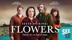 Flowers is a British black comedy-drama sitcom written by Will Sharpe and starring Olivia Colman and Julian Barratt. It was commissioned by the British broadcaster Channel 4, in association with the American TV streaming service Seeso.[4] The first series premiered in the U.K. with two episodes on 25 April 2016 and was broadcast daily during the week, ending on 29 April.[5][1] In the United States, all 6 episodes were released online on 5 May 2016.[6] The series concluded with a second series following the same pattern, premiering with two episodes on 11 June 2018, in the UK, followed by an episode daily during that week.