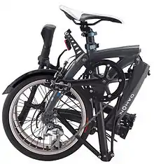 A folding bicycle is a bicycle designed to fold into a compact form, facilitating transport and storage. When folded, the bikes can be more easily carried into buildings, on public transportation (facilitating mixed-mode commuting and bicycle commuting), and more easily stored in compact living quarters or aboard a car, boat or plane.